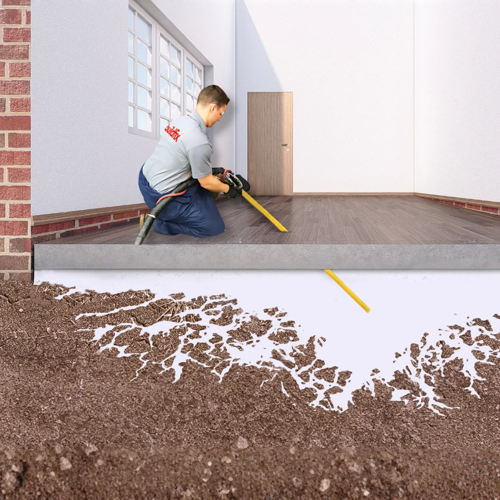 GeoPoly™ SJ120 is a geopolymer resin concrete relevelling solution that lifts sunken slabs while simultaneously increasing the foundation's load-bearing capacity. The resin works with a chemical expansion pressure that is completely controllable and safe — fixing the cause from beneath, not the surface from above.