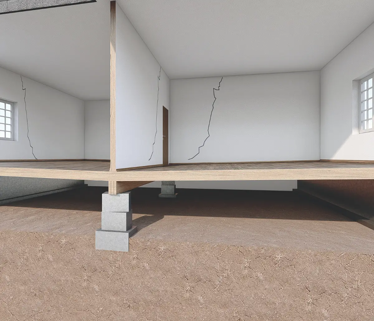 But when the floor starts bouncing underfoot, doors begin to stick, and you can feel the slope getting worse — something else is going on. Most of the time, the piers are fine. The ground beneath them isn't. The soil has shifted, washed away, or dried out, and the piers have lost contact with what was holding them up.